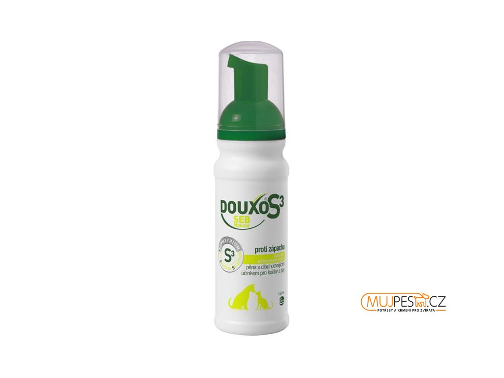 Pěna Douxo S3 Seb vhodná pro psy a kočky s mastnou nebo šupinatou kůží. Obsahuje ophytrium, čištěnou přírodní složku vysoce účinného komplexu S3 (Safe Skincare Selection). Zklidňuje, obnovuje a posiluje pokožku. Redukuje lupy, přebytečný maz a nepříjemné zápachy. Hydratuje a posiluje kožní bariéru. Zanechává srst jemnou a lesklou, restrukturalizuje ji a usnadňuje její rozčesávání. Nanášení pěny je jednoduché a není třeba ji oplachovat. Má nedráždivé složení, jemnou hypoalergenní vůni a pH přizpůsobené pokožce psů a koček. Neobsahuje parabeny, barviva ani nanočástice.