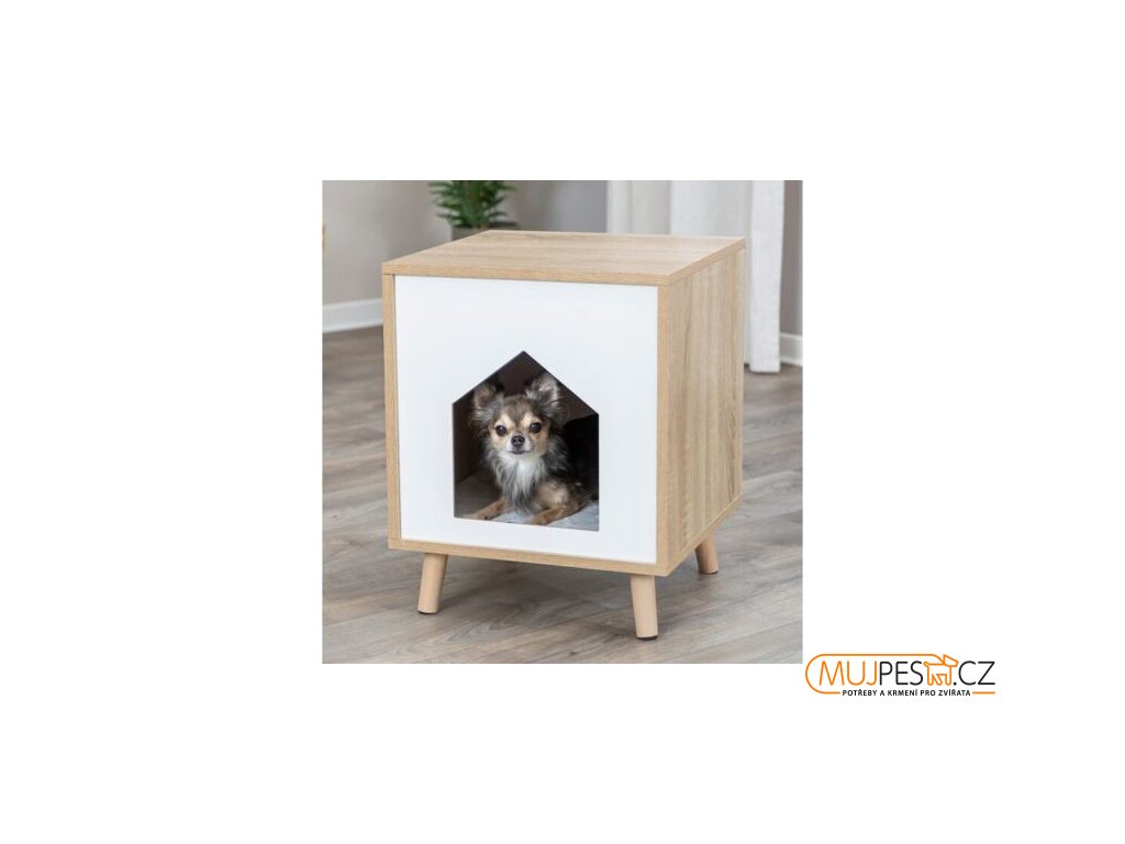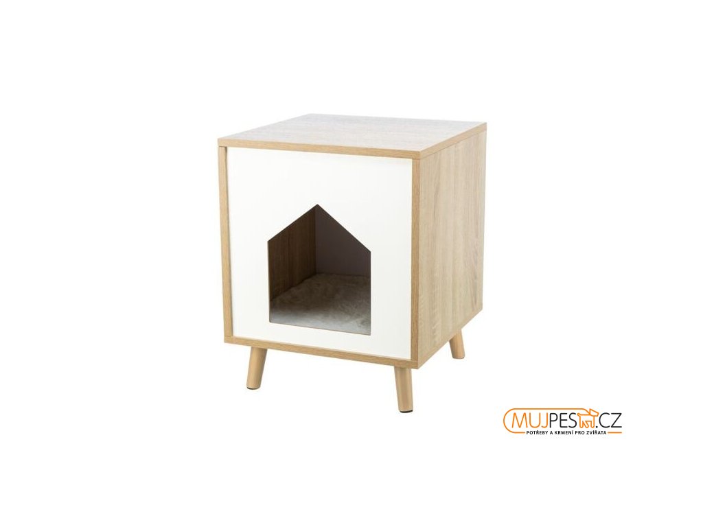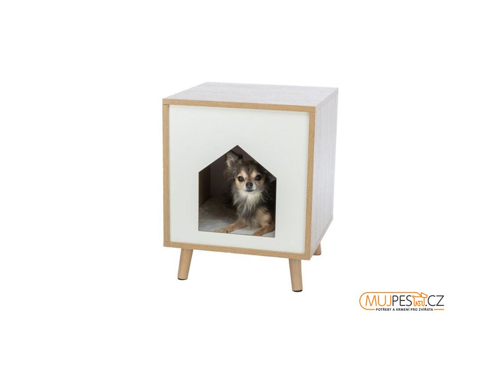 Dřevěná boudička ISA na nožkách 40 x 50 x 40 cm, světlehnědá/bílá