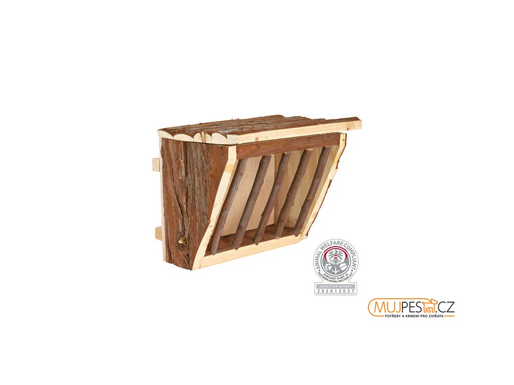 Dřevěné jesličky na seno s úchytem na klec 20 x 15 x 17 cm