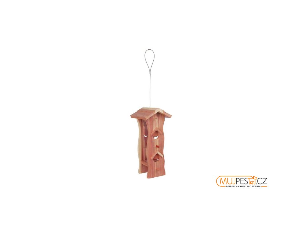 Dřevěné krmítko z cedrového dřeva a plexiskla, se stupačkou