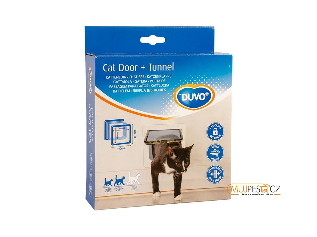 Upozornění: Předem se ujistěte, že rozměry dvířek jsou pro vaši kočku vhodné. Tento model je dimenzovaný pro malé až středně velké kočky.