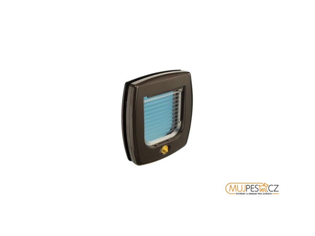 Průchozí dvířka pro kočky se čtyřmi polohami zámku. Vhodná do stěn, skla, dřeva, kovu a sítí proti hmyzu. Velikost průchodu na šířku 21,8 cm, na výšku 25,5 cm.