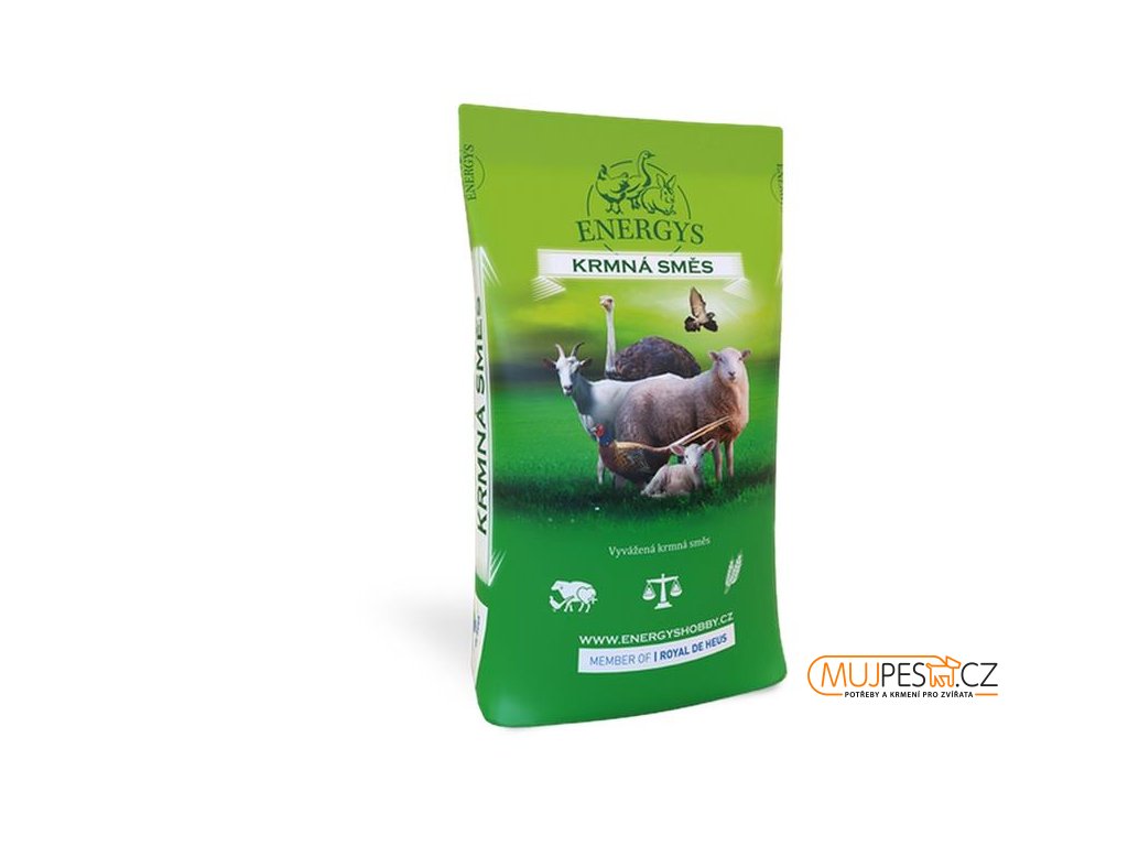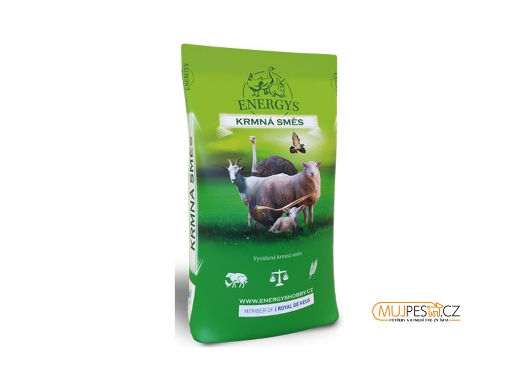 pšenice, kukuřice, extrahovaný šrot sójový toastovaný*, pšeničné otruby, uhličitan vápenatý, slunečnicový loupaný extrahovaný šrot (moučka), pšeničné middlings, kukuřičné klíčky, řepkový extrahovaný šrot (moučka), lihovarské výpalky tmavé, vinázy, kukuřičný výluh, živočišný tuk (prasata, ptáci, přežvýkavci), chlorid sodný, dihydrogenfosforečnan vápenatý, síran sodný.