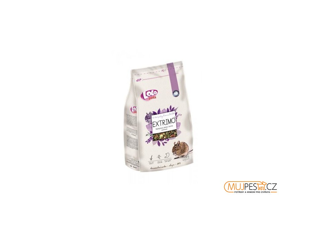 Extrimo je vysoce kvalitní a vyvážené krmivo, které splňuje specifické výživové potřeby osmáků degu. Obsahuje pečlivě vybrané přírodní složky, které podporují zdravé trávení, vitalitu a celkovou kondici.