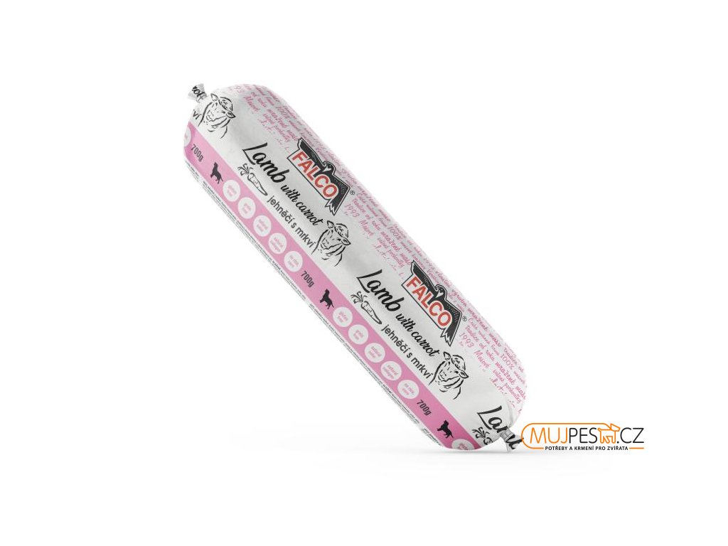 Složení: hovězí maso (svalovina, srdce, plíce, játra), kuřecí maso (kuřecí čtvrtky a chrupavky), jehněčí svalovina, mrkev