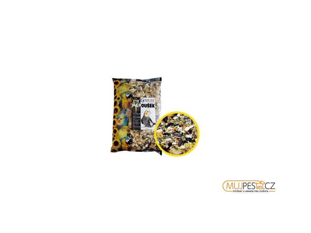 Složení: semena, obiloviny, ořechy, pekařské výrobky, kvasnice, minerální látky. Přibarveno – doplňkové látky ES