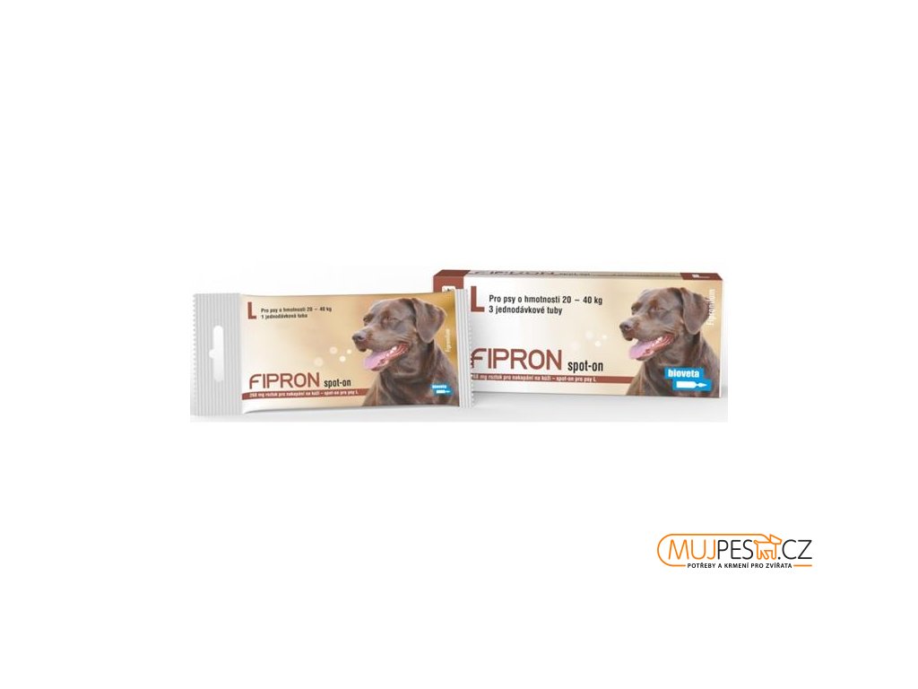 Psi o hmotnosti nad 20 a do 40 kg: obsah jedné tuby o objemu 2,68 ml (L). Takto zajistíte minimální doporučenou dávku fipronilu 6,7 mg/kg ž.hm.