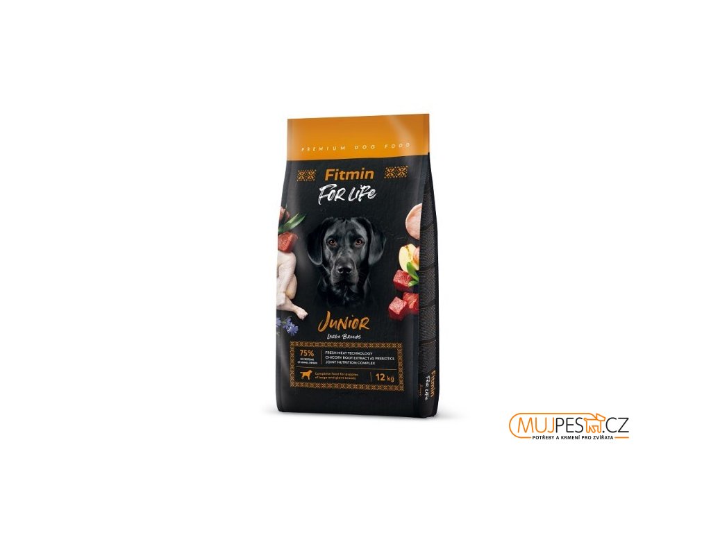 Suroviny: maso (čerstvé maso /drůbeží, vepřové, hovězí/ - 22,5%, sušené drůbeží maso 23%, hydrolyzovaná vepřová játra 3,5%), rýže zlomková, pšenice, drůbeží tuk (10,7 %), kukuřice, pšeničné otruby, cukrovarské řízky sušené, hydrolyzované drůbeží proteiny, pivovarské kvasnice, pšeničné klíčky, sušené jablečné výlisky, lososový olej (0,4 %), glukosamin (0,15 %), chondroitin-sulfát (0,08 %), čekankový kořen (0,05 %)