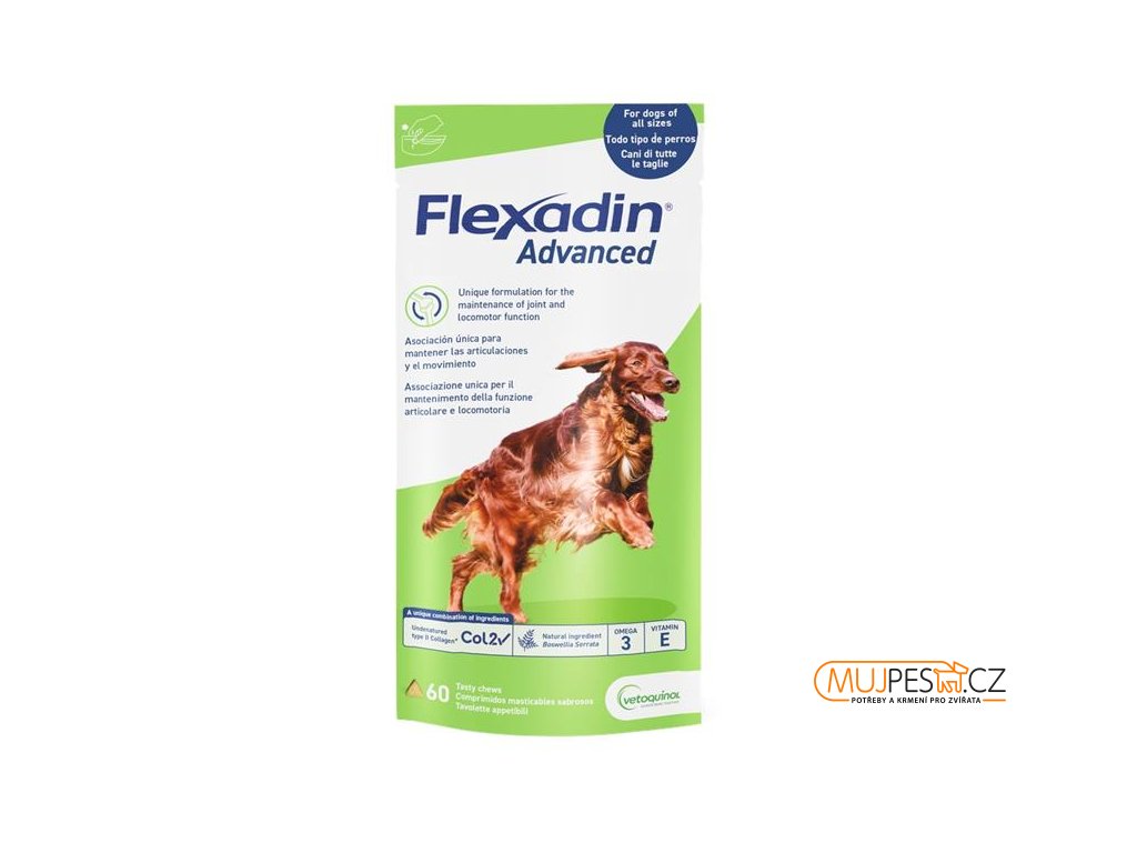 Flexadin® Advanced je veterinární přípravek / doplněk krmiva podporující metabolismus kloubů. Původní receptura byla obohacena o výtažek léčivé rostliny Boswellia serrata, která je známá pro svůj protizánětlivý účinek.
