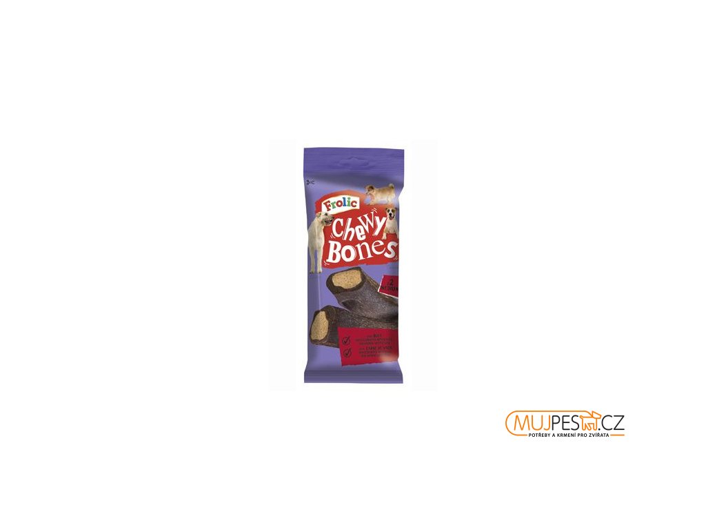 Lahodné žvýkací kosti Frolic pochoutka Chewy Bones jsou doplňkovým krmivem pro dospělé psy obsahující hovězí maso. Každá žvýkací kost poskytuje 42% denní energetické potřeby 15kg psa. Není vhodné pro psy do 8kg a štěňata do 9 měsíců. Čerstvá pitná voda musí být vždy k dispozici.