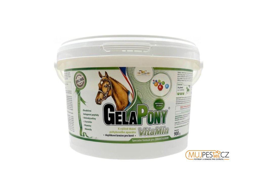 GelaPony VitaMín je doplňkové krmivo pro koně v zájmovém chovu, dostihové a sportovní. Představuje komplexní vitamíno-minerální doplněk s bioaktivními kolagenními peptidy. Je vhodný pro denní doplňování vitamínů a minerálních látek do krmné dávky koní. Současně zajišťuje příjem bioaktivních kolagenních peptidů pro preventivní výživu pohybového aparátu.