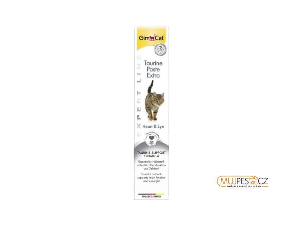 Pasta GimCat Taurine Extra je ideálním doplňkem stravy pro dospělé kočky. Podporuje zdraví zraku a srdce, prospívá kůži a zvyšuje lesk srsti. Podporou funkcí nervové soustavy přispívá k dobré náladě kočky. Navíc má pasta výtečnou chuť a snadno se podává. Obsahuje taurin, B-komplex a vápník. Podávejte jako přídavek ke krmení nebo jako odměnu.