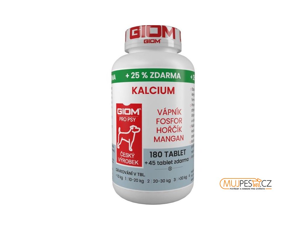 Giom kalcium pro psy a kočky je vhodné podávat štěňatům středních a velkých plemen, laktujícím fenám a v období stáří psů, kdy se u psů snižuje schopnost vstřebávat vápník.