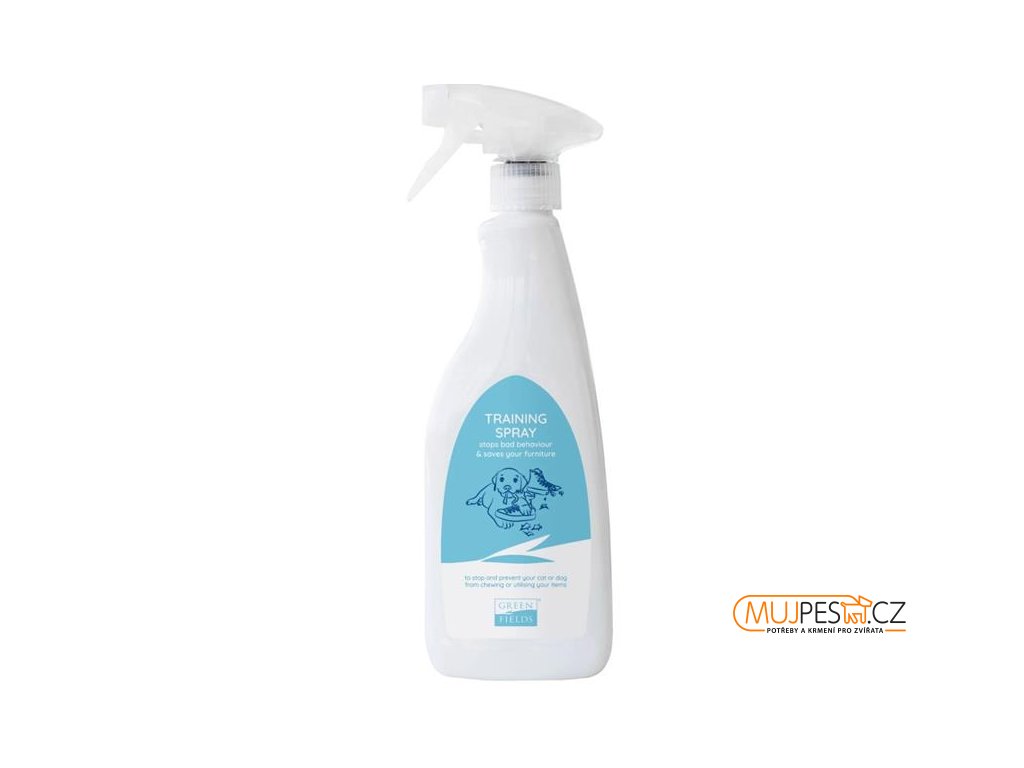 Tréninkový sprej Greenfields Training pro efektivní výcvik psů a koček (zejména štěňat a koťat). Pomáhá zabránit nežádoucímu chování, jako je např. okusování nábytku, bot a dalších předmětů. Zároveň odrazuje zvíře od pohybu či odpočinku v místech, kde si to nepřejete. Sprej je vhodný pro vnitřní i venkovní použití.