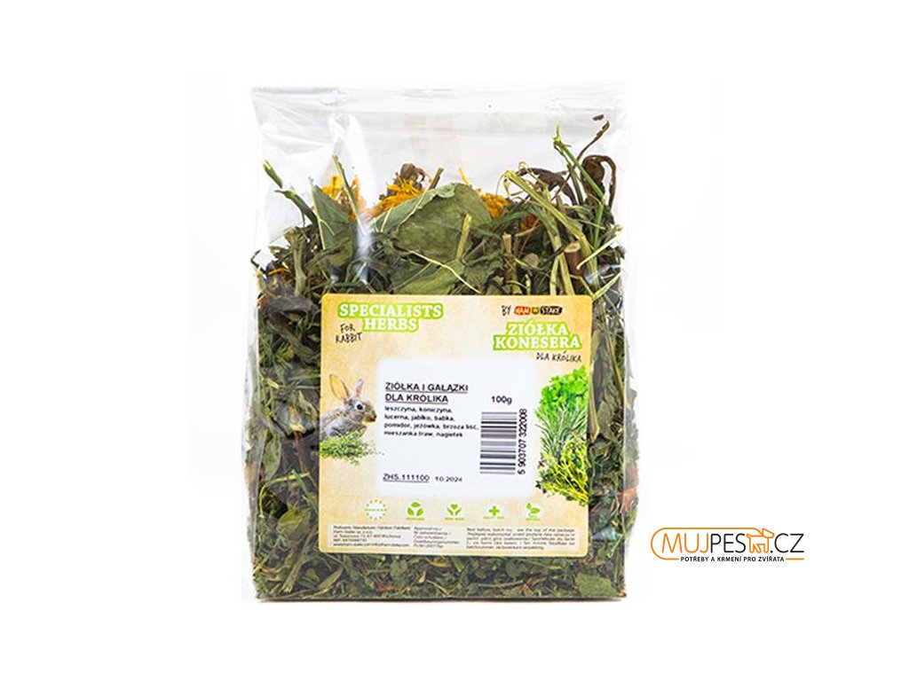 Čistě přírodní směs obsahuje bohatou škálu sušených bylin, květů, ovoce, zeleniny a větviček k okusu. Je určená ke zpestření jídelníčku králíků a dalších drobných savců. Chutnou směs můžete zvířeti opatrně nabízet z ruky jako odměnu a tím upevňovat váš vztah. Nebo můžete několik kousků schovat v kleci či v ohrádce a podnítit tak u zvířete přirozený pud hledání potravy.