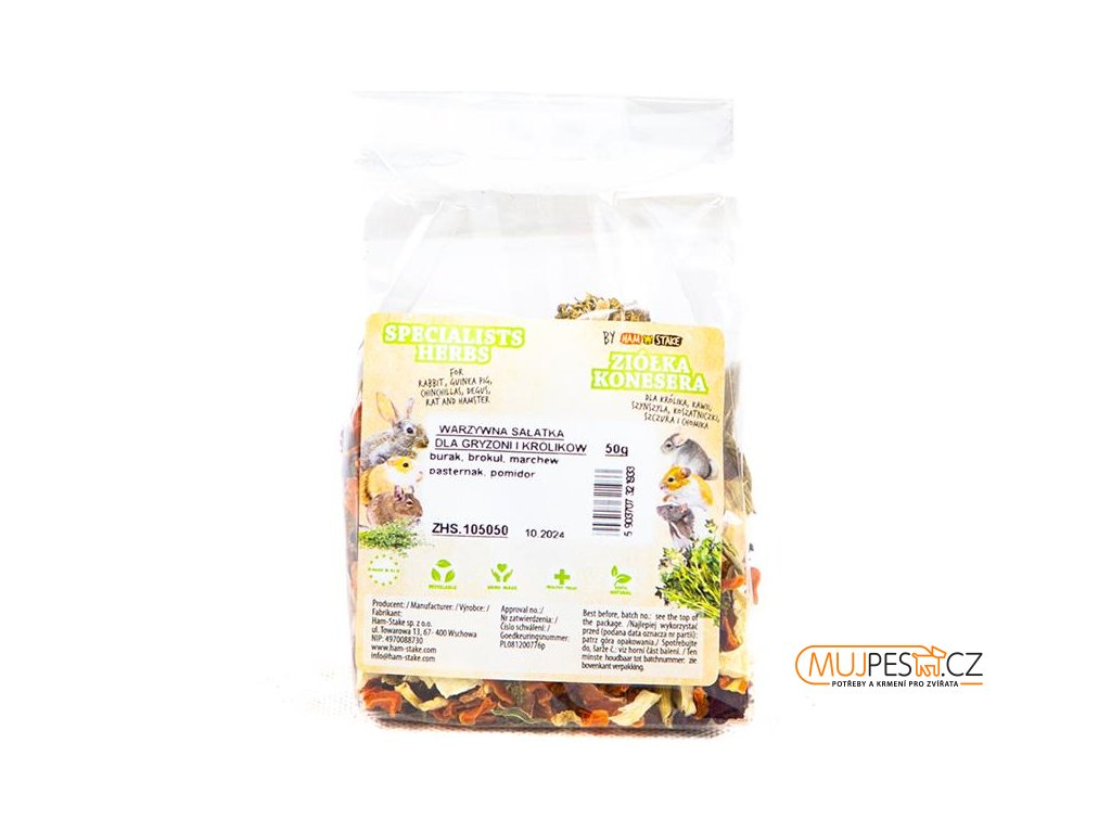Čistě přírodní směs sušené zeleniny je určená ke zpestření jídelníčku vašeho drobného hlodavého kamaráda. Chutnou zeleninu můžete zvířeti opatrně nabízet z ruky jako odměnu a tím upevňovat váš vztah. Nebo můžete 1–2 kousky schovat v kleci či v ohrádce a podnítit tak u zvířete přirozený pud hledání potravy.