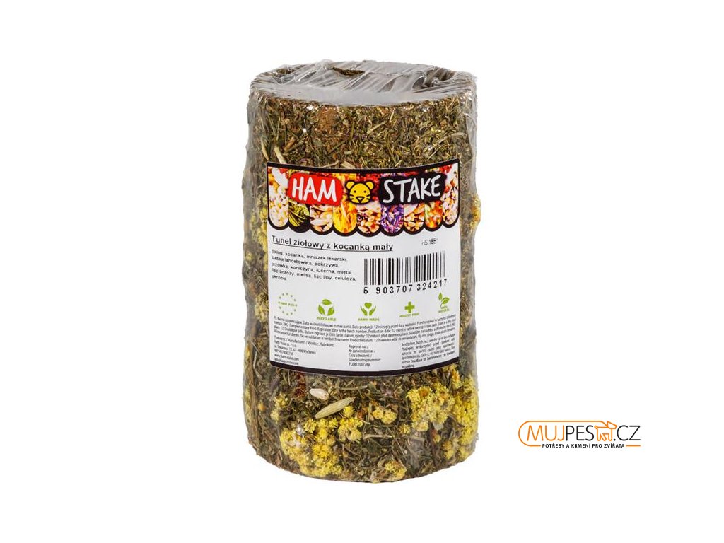 Tunel z celulózy obalený kvítky smilu a sušenými bylinkami. Zábavný pamlsek je určený zejména pro králíky, morčata, činčily, osmáky, ale také křečky, potkany, myši a další hlodavce. Menším hlodavcům může posloužit rovněž jako úkryt.
