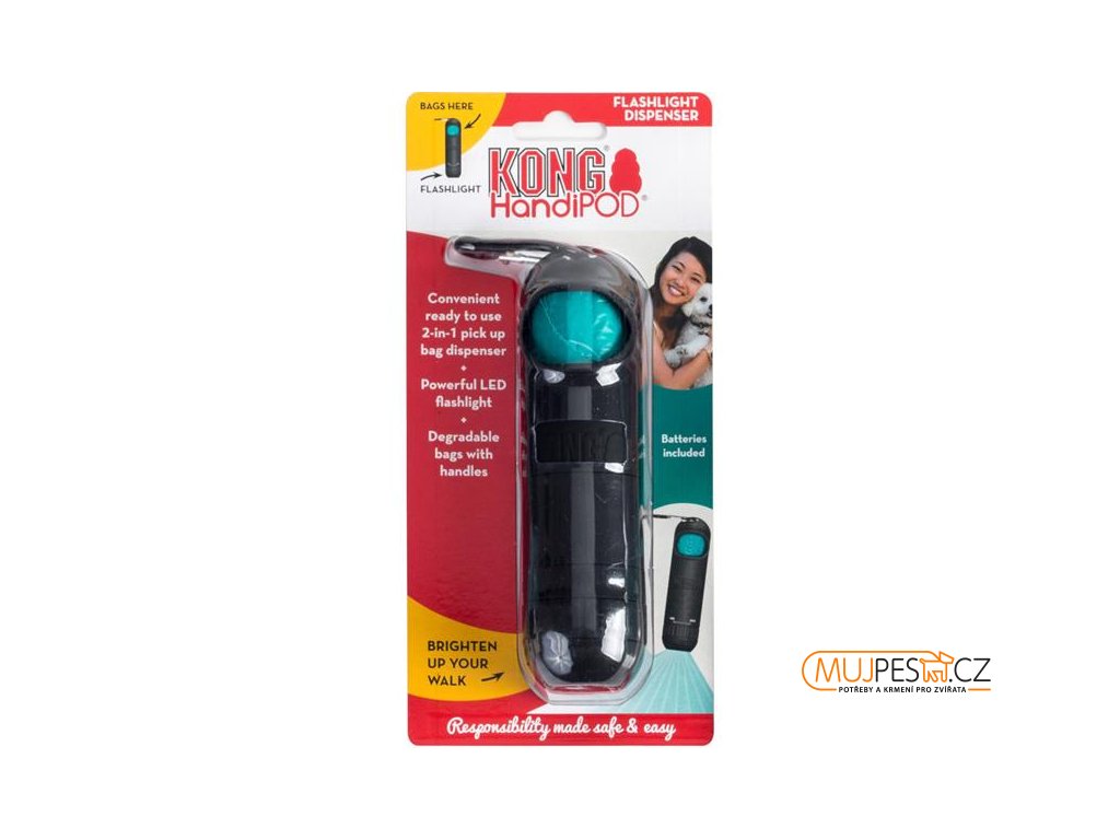 Rozjasněte své ranní a večerní procházky se svítilnou KONG! Za špatné viditelnosti využijete baterku, kterou budete mít vždy po ruce společně se sáčky určenými na úklid psích exkrementů.