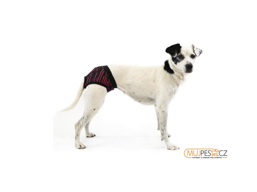 Hárací kalhotky z kvalitní legínoviny, ozdobené výšivkou tlapky. Díky pružným okrajům a v pase našité měkké gumě se velmi snadno a rychlé oblékají, perfektně sedí a fenku nijak neomezují v pohybu. Samozřejmostí je praktický otvor pro ocásek a uvnitř síťka k uchycení vložky.