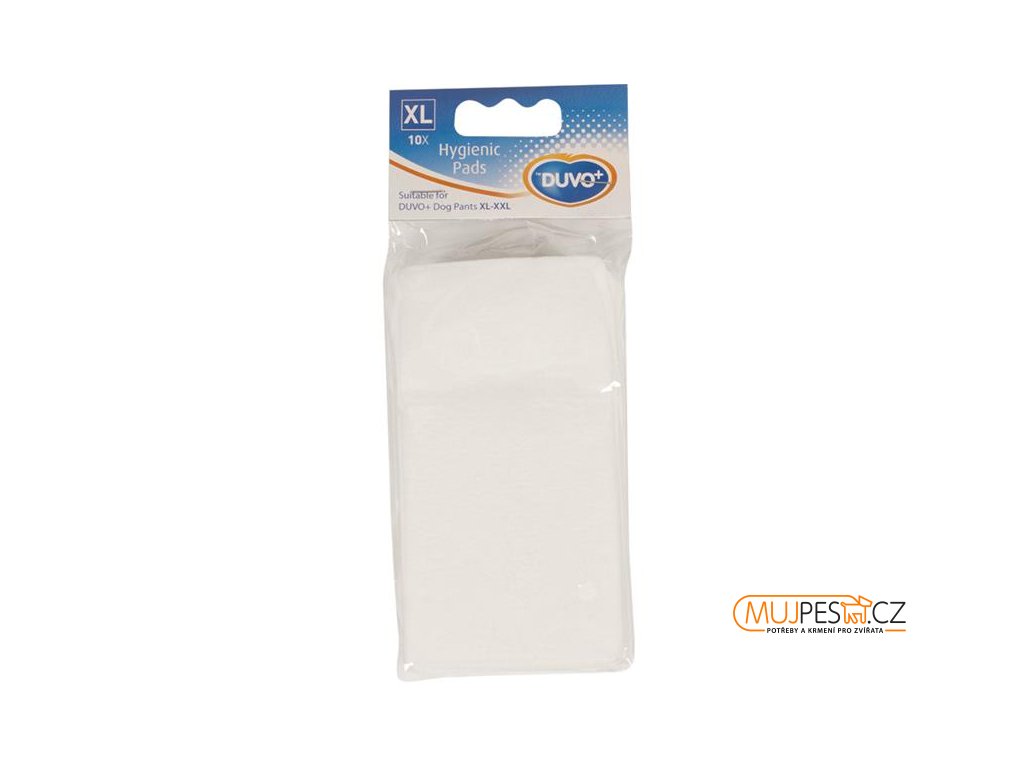 Balení 10 kusů hygienických vložek určených k nalepení do háracích kalhotek. Absorpční vložky jsou měkké, pohodlné a šetrné k pokožce psa.