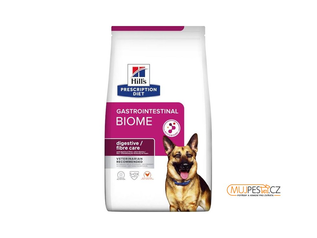 Hill´s Prescription Diet Gastrointestinal Biome s kuřetem je vysoce stravitelné kompletní dietetické suché krmivo používané ke zmírnění poruch vstřebávání živin ve střevech a ke kompenzaci špatného trávení u dospělých psů. Krmivo obohacené o vlákninu má zvýšený obsah sodíku a draslíku a obsahuje vysoce stravitelné přísady.