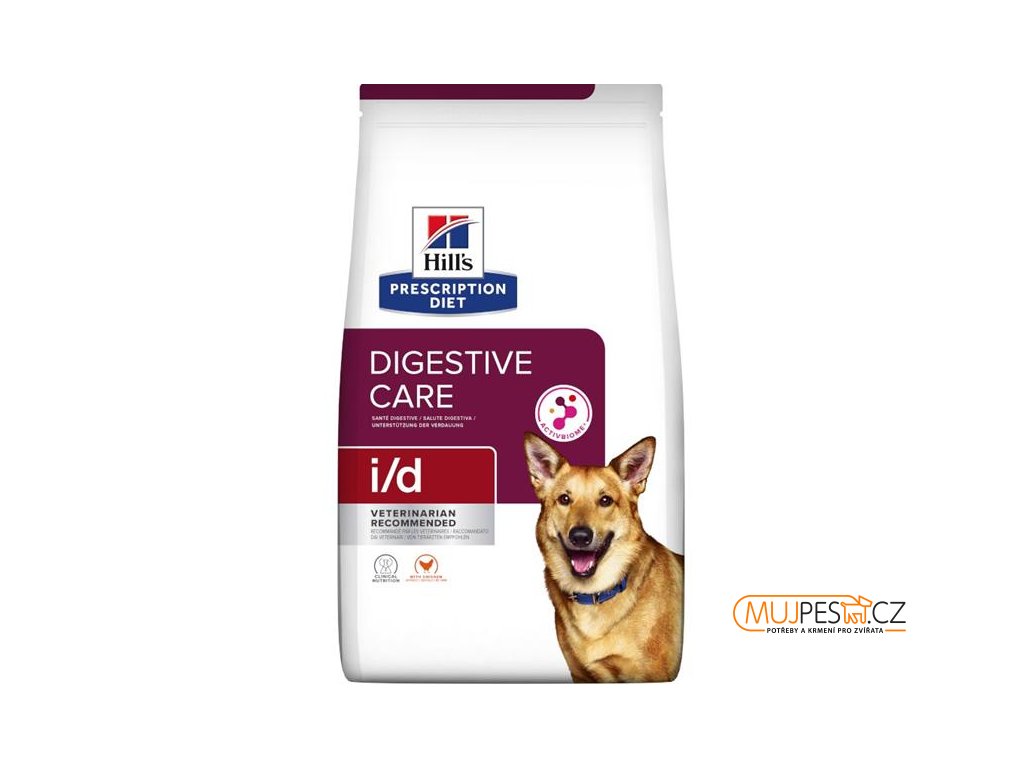 Hill's PRESCRIPTION DIET i/d krmivo s kuřetem pro psy je vysoce stravitelné kompletní dietetické krmivo používané ke zmírnění poruch vstřebávání živin ve střevech a ke kompenzaci špatného trávení a exokrinní pankreatické insuficience u dospělých psů. Toto krmivo má zvýšený obsah sodíku a draslíku a obsahuje vysoce stravitelné přísady.