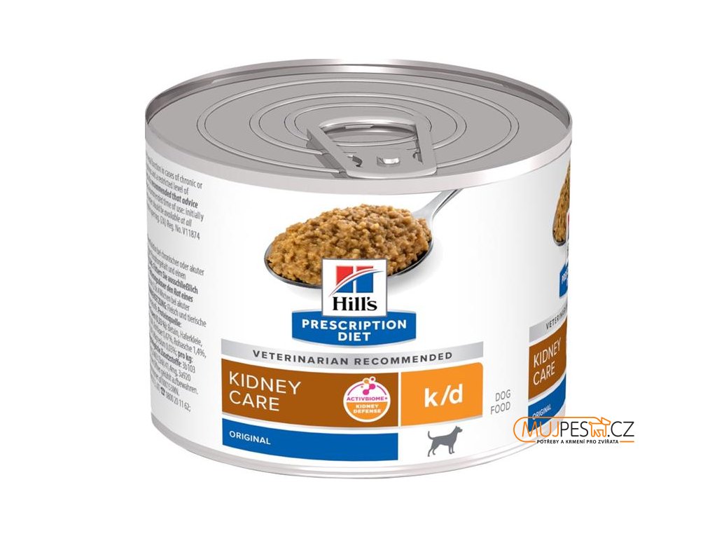 Konzerva Hill's PRESCRIPTION DIET k/d je kompletní dietetické krmivo pro podporu funkce ledvin v případech chronické nebo dočasné renální nedostatečnosti u dospělých psů. Krmivo má nízký obsah fosforu a omezený obsah bílkovin, avšak vysoce kvalitních.