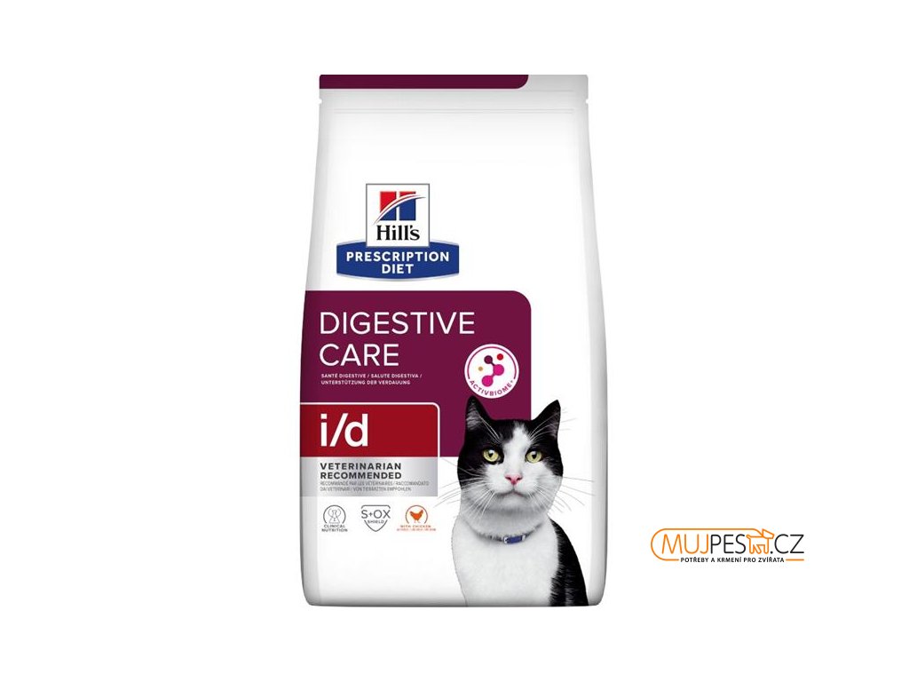 Krmivo Prescription Diet i/d Digestive Care je speciálně vyvinuto pro kočky s gastrointestinálními potížemi. Obsahuje zvýšené množství elektrolytů, nízký obsah tuku a vysoce stravitelné složky. Obsahuje také technologii ActivBiome+, jedinečnou směs prebiotických vláknin, které prokazatelně rychle vyživují střevní mikrobiom a podporují optimální trávení a pohodu vašeho domácího mazlíčka.