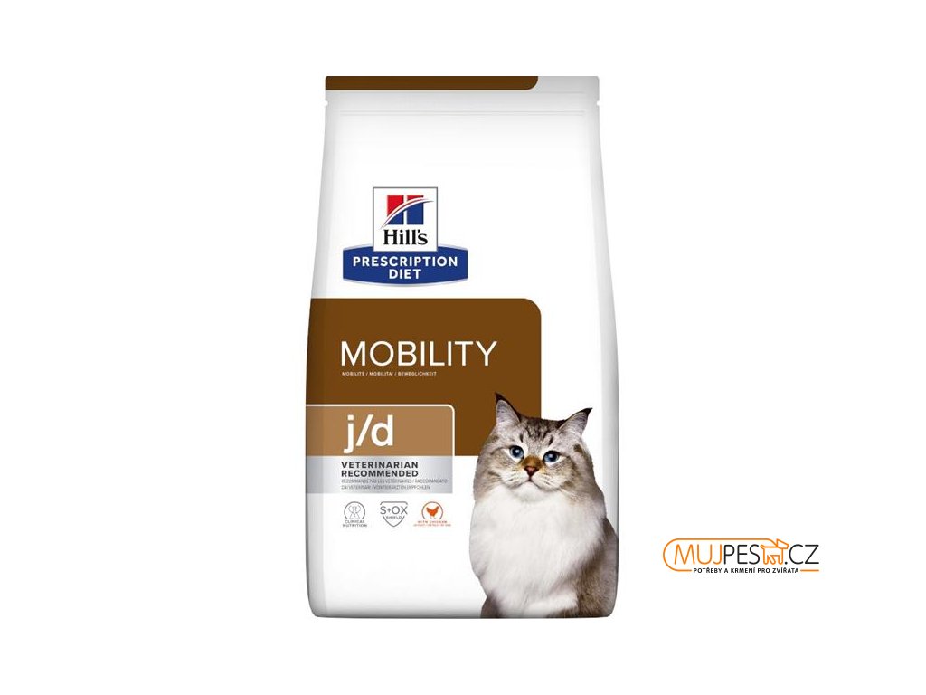 Hill's Prescription Diet j/d Mobility kuřecí poskytuje vaší kočce kompletní a chutné suché krmivo, které bylo speciálně vyvinuto pro podporu metabolismu kloubů při osteoartróze.