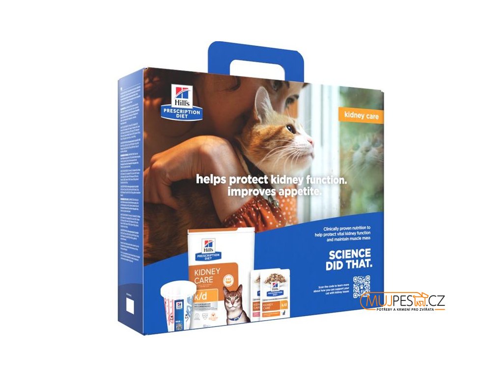 Startovací balení Hill's Prescription Diet k/d Péče o ledviny krmivo pro kočky s kuřetem 400 g + 2 kapsičky.