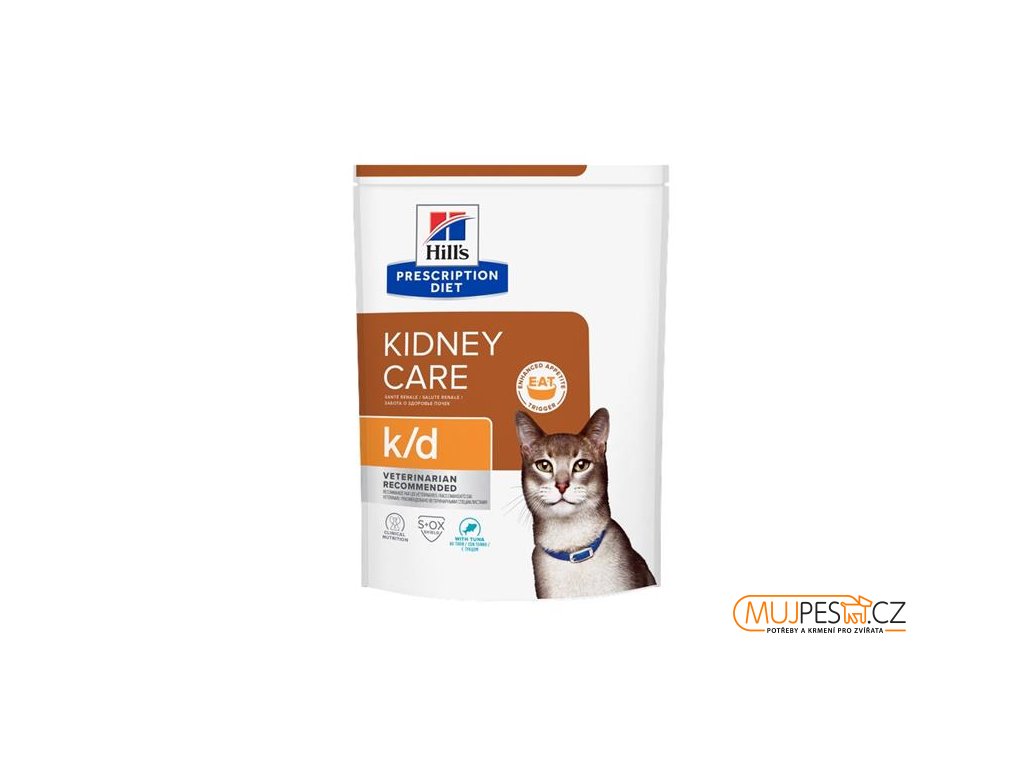 Granule Hill's Prescription Diet Kidney Care k/d představují kompletní dietetické krmivo na podporu funkcí ledvin v případě chronické nebo dočasné ledvinové nedostatečnosti u dospělých koček. Krmivo s tuňákem má nízký obsah fosforu a omezené množství bílkovin, avšak vysoké kvality.