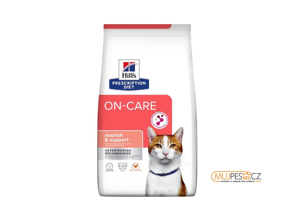 Hill´s Prescription Diet ON-Care krmivo s kuřetem pro kočky je kompletní dietetické suché krmivo pro dospělé kočky vyžadující nutriční podporu a v období rekonvalescence. Toto krmivo má vysokou energetickou hodnotu, vysokou koncentraci nezbytných živin a vysoce stravitelné složky.