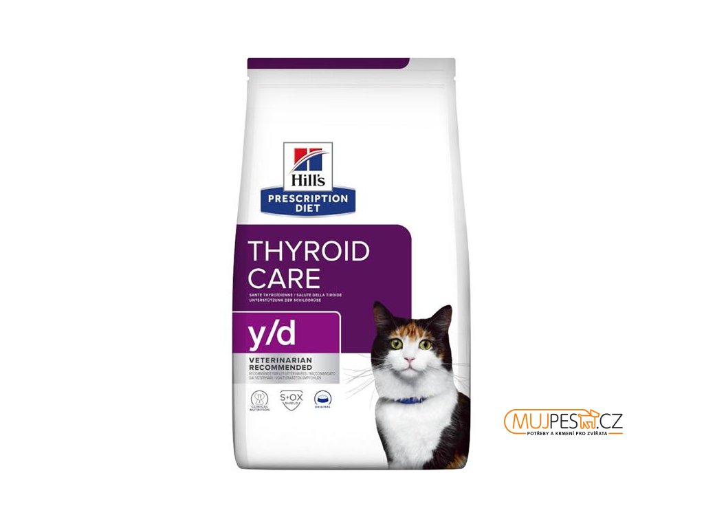 Hill's Prescription Diet y/d krmivo pro kočky je kompletní dietetické krmivo pro dospělé kočky ke snížení obsahu jódu v krmivu v případě hypertyreózy. Toto dietetické krmivo má snížený obsah jódu.