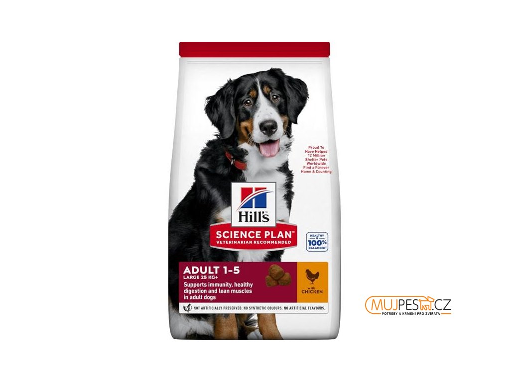 Velcí psi mají specifické nutriční potřeby. Krmivo Hill's Science Plan Canine Adult Large Breed s kuřetem má speciální složení, které naplňuje energetické potřeby dospělých psů velkých plemen během nejlepších let jejich života. Je vyrobeno z vysoce kvalitních, lehce stravitelných ingrediencí a obsahuje vysoce kvalitní bílkoviny pro tvorbu a udržení svalové hmoty a glukosamin a chondroitin pro zdravé klouby a mobilitu. Vyvážená směs omega-6 mastných kyselin a vitamínu E vyživuje kůži pro zdravou a lesklou srst. Krmivo je doporučováno veterináři.