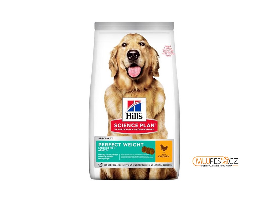 Přechod na nízkokalorickou stravu může být pro vašeho psího přítele náročný. Krmivo Hill's Science Plan Perfect Weight s kuřetem pro dospělé psy velkých plemen poskytuje průlomovou výživu určenou pro regulaci hmotnosti. Bylo vytvořeno na základě desetiletí špičkového výzkumu a představuje lahodnou stravu, na níž si velcí dospělí psi skutečně pochutnají. Je vyrobeno z vysoce kvalitních surovin a obsahuje bílkoviny a L-karnitin pro zachování svalové hmoty. Je doporučováno veterináři.