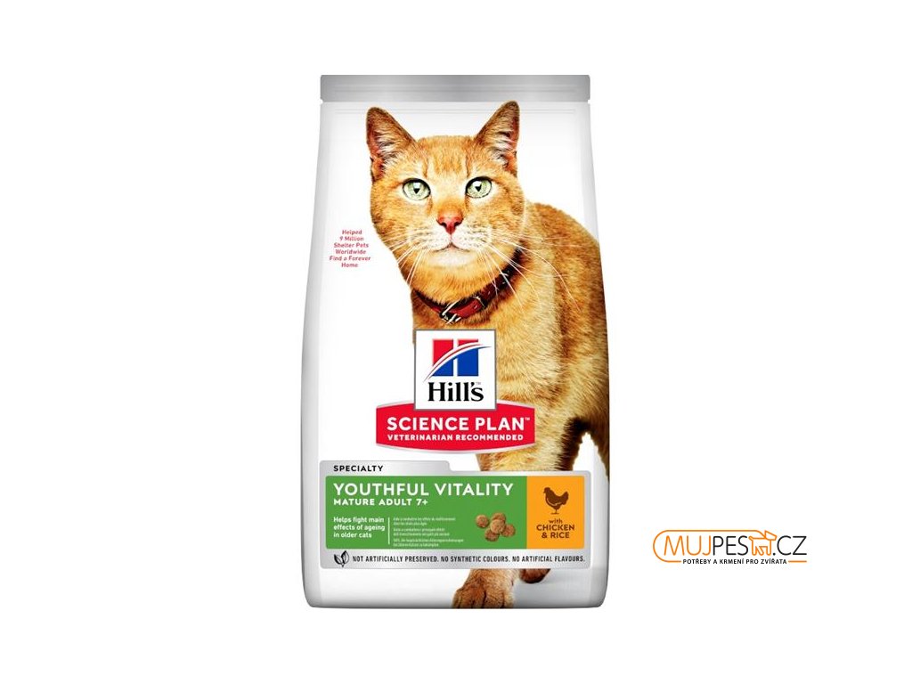 Hill's Science Plan Youthful Vitality krmivo pro kočky poskytuje přesně vyváženou výživu pro boj s hlavními následky stárnutí u starších koček.