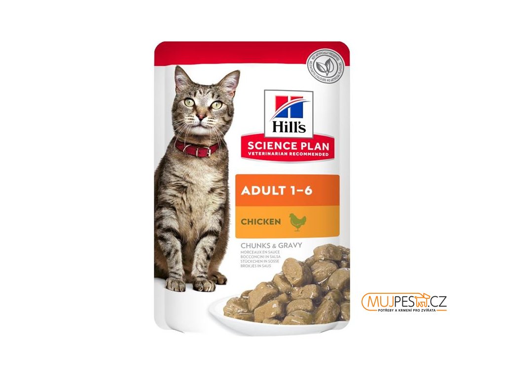 HILL'S SCIENCE PLAN kapsička pro dospělé kočky má speciální složení pro naplnění energetických potřeb koček ve věku 1–6 let. Křehké kousky ve šťávě s kuřecím masem s vysoce kvalitními bílkovinami podporují tvorbu a udržení svalové hmoty, vitamín E, omega-3 a omega-6 mastné kyseliny prospívají kůži a vyvážené minerální látky podporují zdraví životně důležitých orgánů.