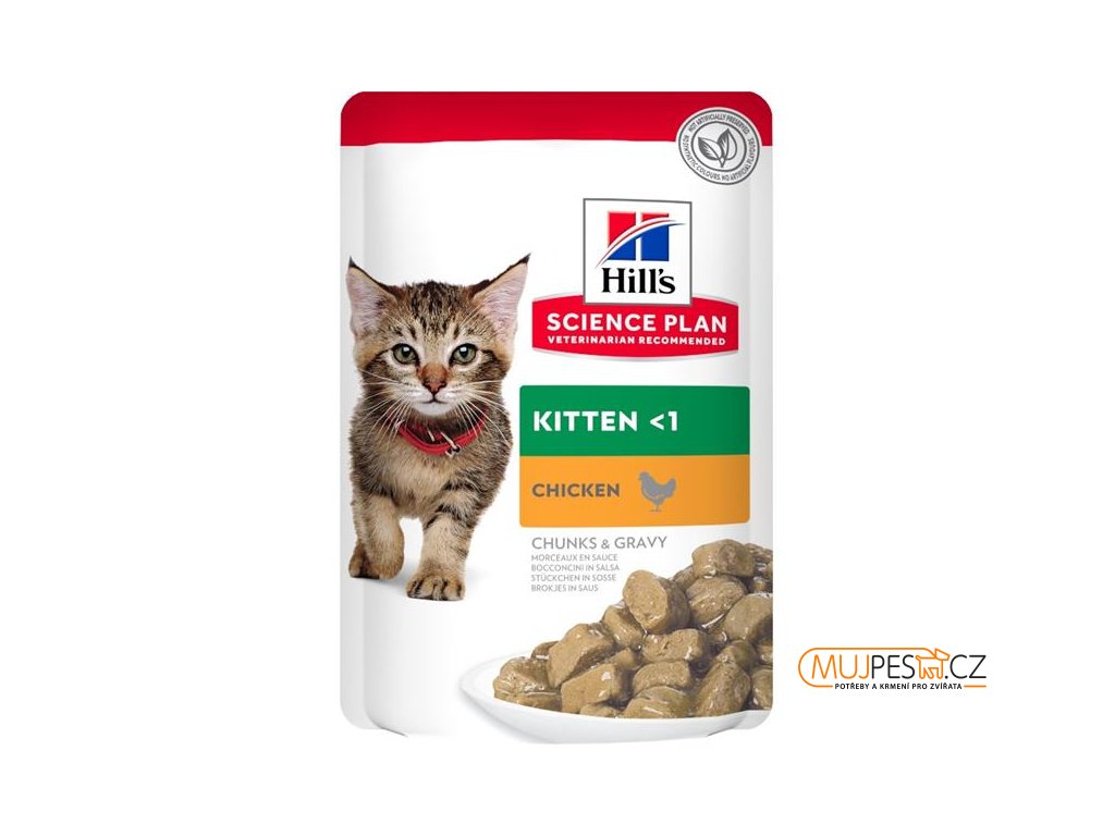 HILL'S SCIENCE PLAN Kitten kapsička je přizpůsobena potřebám koťat ve vývinu do věku 1 roku. Optimální obsah DHA z rybího tuku podporuje zdravý vývoj očí a mozku koťat. Vlhké krmivo poskytuje vysoce kvalitní bílkoviny, které podporují růst svaloviny a správný vývoj kotěte. Vyvážené množství minerálních látek podporuje silné kosti a zuby. Kapsička je vhodná také pro březí a kojící kočky.