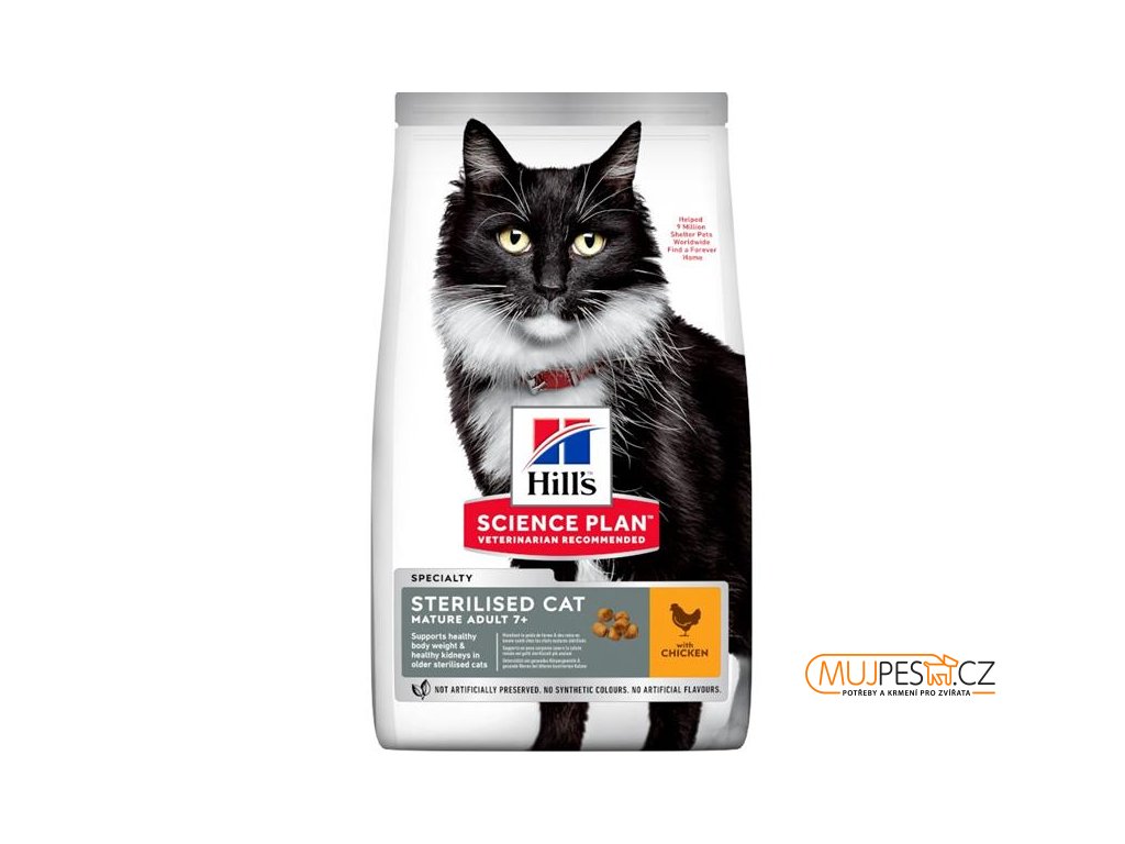 Hill's Science Plan Sterilised Cat krmivo pro dospělé kastrované kočky od 7 let.