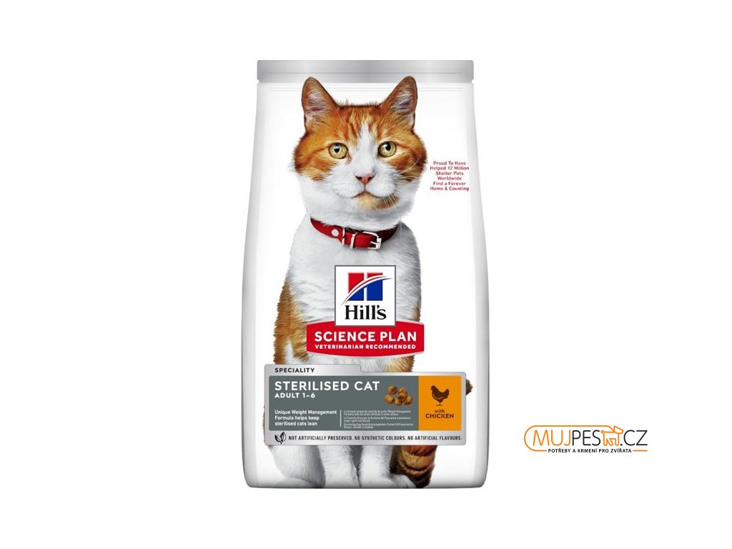 Hill's Science Plan Sterilised Cat krmivo pro kastrované mladé dospělé kočky ve věku 6 měsíců až 6 let.
