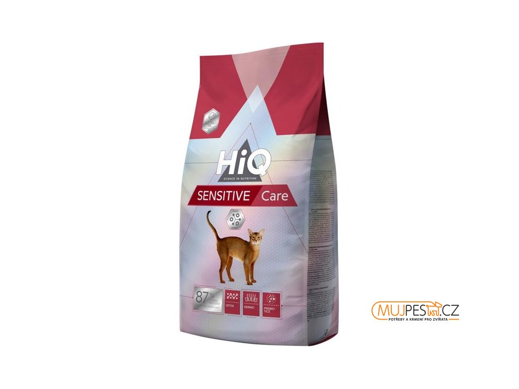 Kompletní krmivo HiQ Adult Sensitive pro dospělé kočky starší 1 roku s citlivým zažíváním obsahuje jako hlavní složku drůbeží maso – zdroj nejsnáze stravitelných živočišných bílkovin ideální pro udržení správného svalového tonu. Komponenty krmiva podporují zdraví pokožky, napomáhají k lesklé a husté srsti a mohou být i prevencí kožních onemocnění. Granule obsahují prebiotika, která podporují správné fungování trávicího traktu.