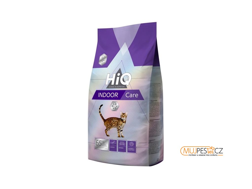 Kompletní krmivo HiQ pro dospělé kočky chované převážně v bytě podporuje zdraví pokožky. Vhodné pro kočky starší než 1 rok. Komponenty krmiva napomáhají zachovat lesk a hustotu srsti. Zároveň podporují snadné trávení a vstřebávání živin. Krmivo napomáhá pečovat o polštářky na kočičích tlapkách. Podporuje správné fungování činnosti srdce.