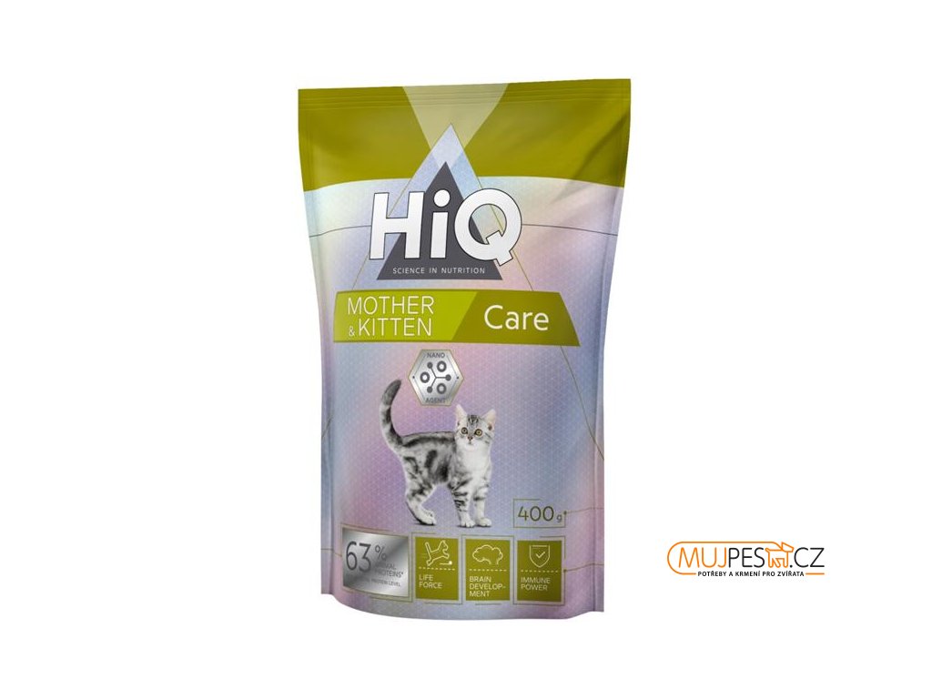 Kompletní krmivo HiQ pro koťata a rostoucí mladé kočky (do 1 roku) podporuje udržení správného metabolismu a optimální hmotnosti kočky. Je taky vhodné pro březí a kojící kočky. Perfektní řešení výživy matky a její koťat. Krmivo podporuje snadné trávení a vstřebávání živin. Komponenty krmiva napomáhají zachovat lesk a hustotu srsti, podporují zdraví pokožky. Zároveň správný výběr komponentů krmiva zajišťuje podporu provozu nervové soustavy, což u mladých koček je obzvlášť důležité.