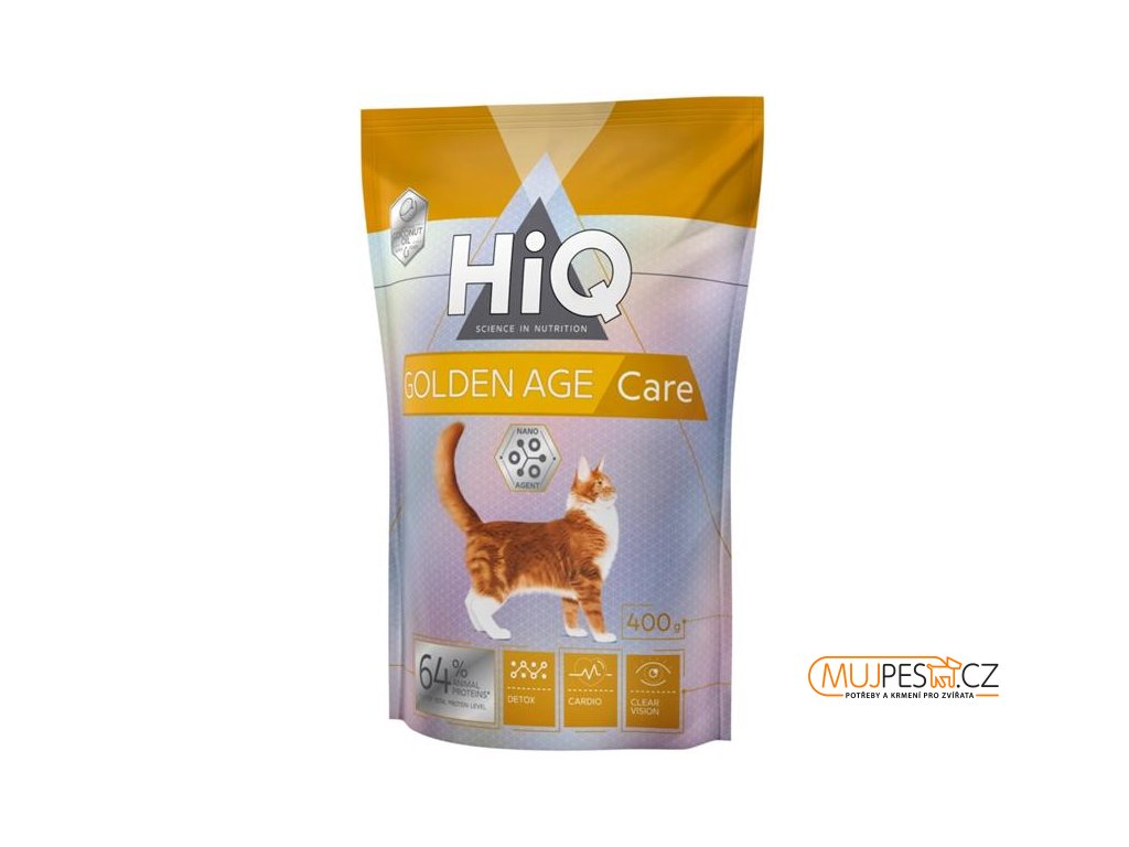 Kompletní krmivo HiQ je vhodné pro kočky starší než 10 let. Krmivo podporuje správné fungování všech systémů organismu u starších koček. Při správném podávání snižuje riziko vzniku šedého zákalu (katarakta), chrání oči před škodlivými účinky vnějšího prostředí. Komponenty krmiva napomáhají zachovat lesk a hustotu srsti. Zároveň podporují snadné trávení a vstřebávání živin. Podporuje správné fungování činnosti srdce.