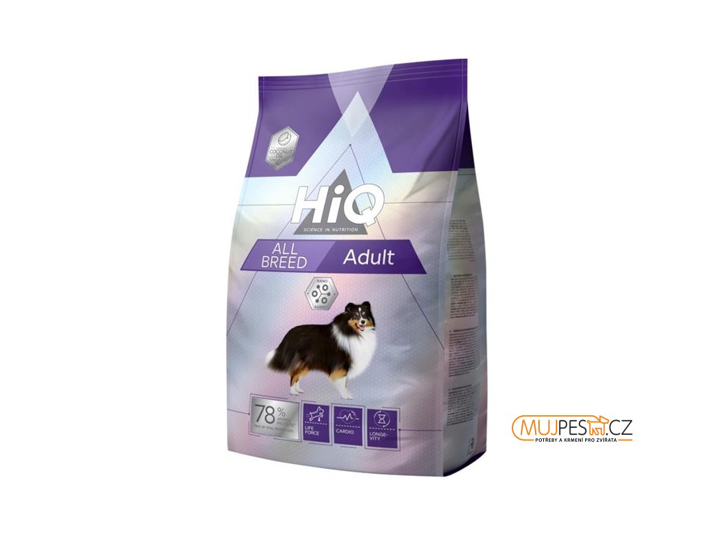 Kompletní krmivo HiQ pro dospělé psy všech plemen obsahuje jako hlavní složku drůbeží maso – zdroj nejsnáze stravitelných živočišných bílkovin ideální pro udržení správného svalového tonu. Receptura je doplněná o omega-3 a omega-6 mastné kyseliny a vyvážený komplex vitamínů a minerálů pro udržení fyzického zdraví a energetické rovnováhy.