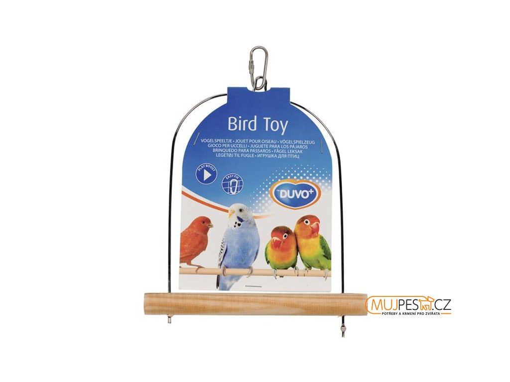 Houpačka zpříjemní a obohatí ptákům prostředí v kleci a podnítí jejich aktivitu. Snadno ji zavěsíte do klece pomocí karabinky, která je součástí houpačky. Bidlo je dřevěné, zavěšené na kovovém oblouku.