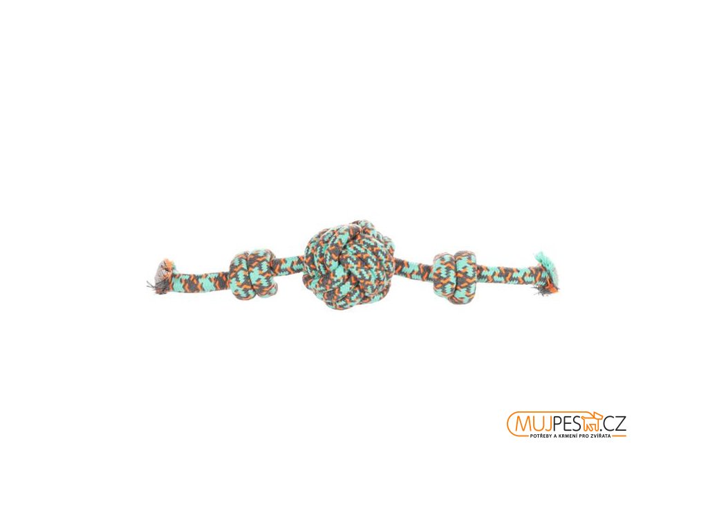 Hračka z pevného bavlněného lana s uzlovým míčkem uprostřed a dvěma menšími uzly po stranách je skvělá na přetahování, aportování i kousání. Při hře přirozeně čistí zuby a tím pomáhá snižovat tvorbu zubního plaku.