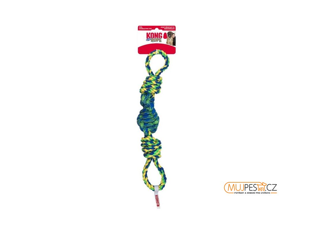 Pružící splétaný uzel KONG Rope Bunji má na obou koncích smyčku pro pohodlnější úchop v zubech a v ruce. Ideální hračka pro vnitřní i venkovní aktivity. Díky podlouhlému tvaru se psovi dobře nosí v tlamě.