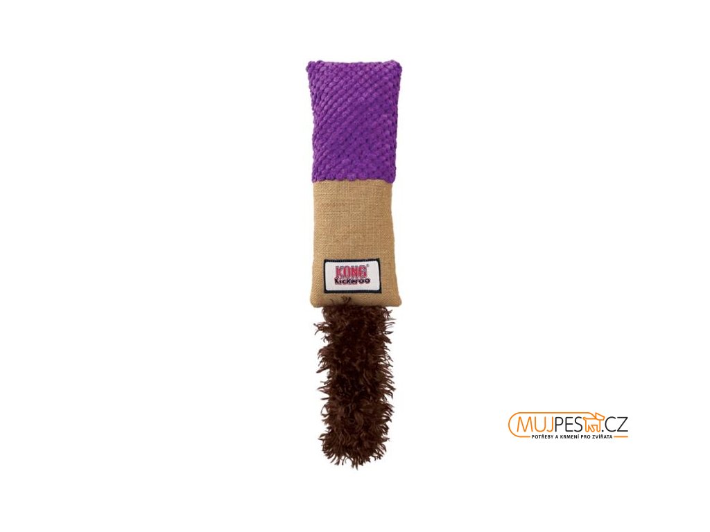 Velká plyšová hračka pro kočky KONG Kickeroo Pytlík s ocáskem. Měkký pytlík s ocáskem je naplněn catnipem. Catnip, neboli šanta kočičí, je přírodní nenávykovou bylinou, která vybídne ke hře až 70 % koček. Catnip kočky přitahuje a podporuje tak jejich přirozené lovecké instinkty – pronásledovat a lovit.