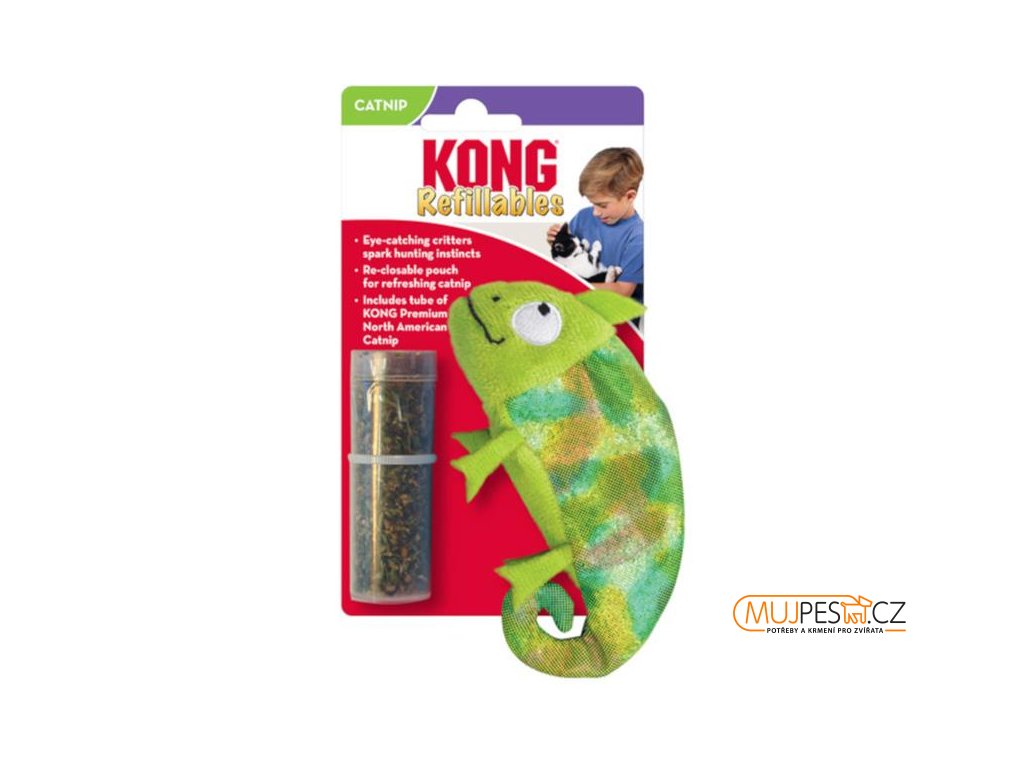 Roztomilý lesklý chameleon KONG Refillables s dlouhým zakrouceným ocáskem probudí ve vaší kočce přirozené lovecké instinkty, zažene nudu a přispěje k udržení dobré fyzické i psychické kondice. Pro větší vzrušení i radost ze hry lze zvířátko opakovaně plnit magickou šantou kočičí (catnipem), přírodní nenávykovou bylinou, která povzbuzuje ke hře až 70 % koček. Pomocí znovuuzavíratelného sáčku regulujete aroma.